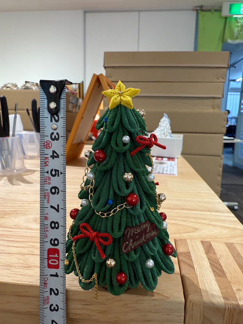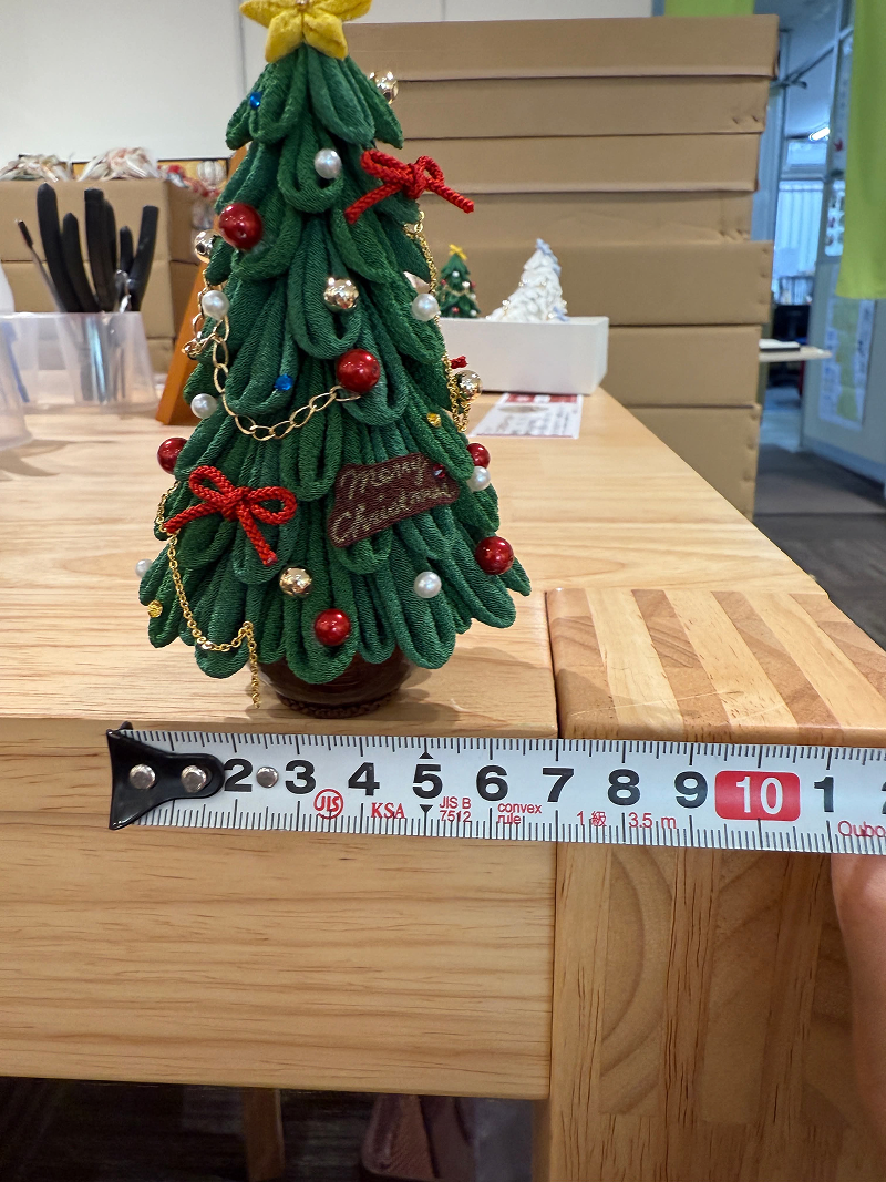 通常の体験時間でできる高さ約6㎝の可愛らしいクリスマスツリーと