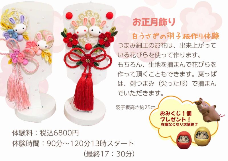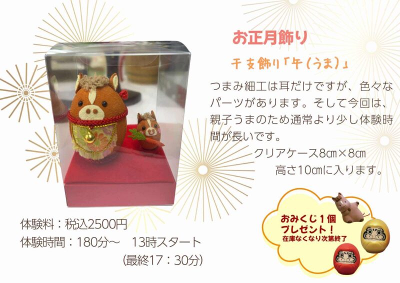 ※干支飾りはお子様にも大人気です。ただ、今回は親子うまなので体験時間が少し長くなります。小学生以下のお子様が参加される場合は必ず保護者の方同伴でサポートお願い致します。