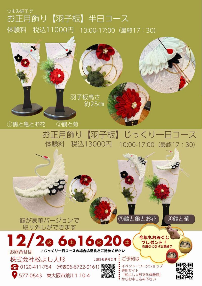 メニューで「お正月飾り(羽子板)」などを選択し、ご希望の日程をクリックして申込みをお願いいたします。